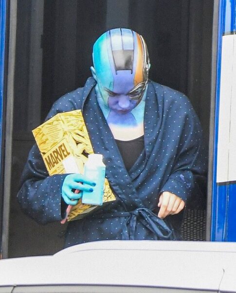 Novas imagens do set de gravações foram divulgadas, pelo usuário do Twitter @lovethundernews, e mostram a Nebulosa e um misterioso alienígena de pele azul. Confira: